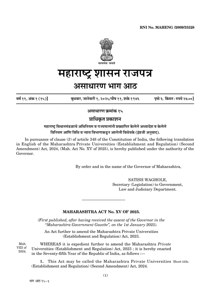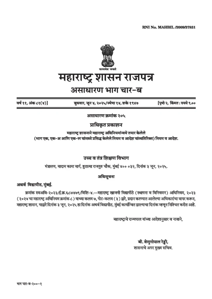 Atharva University Mumbai (Maharashtra Act No. XV of 2025)